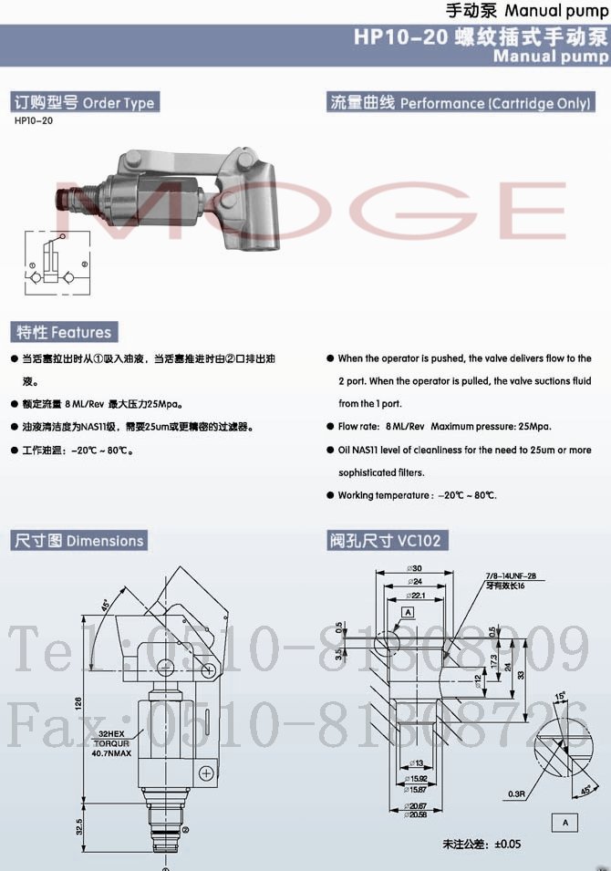 HP10-20,螺纹插式手动泵,螺纹插式手动泵价格,螺纹插式手动泵生产厂家,MOGE
