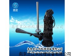 潜水射流曝气机通 过潜水泵产生的水流经过喷嘴形成高速水流,在喷嘴周围形成负压吸入空气,经混合室与水流混合,在喇叭形的扩散管内产生水气混合流,高速喷射而出,夹带许多气泡的水流在较大面积和深度的水域内涡旋搅拌,完成曝气,并且其轴功率不随潜没深度的变化而变化,进气量可以调节。正因为如此,潜水射流曝气机可以在水位变化较大的池中应用。