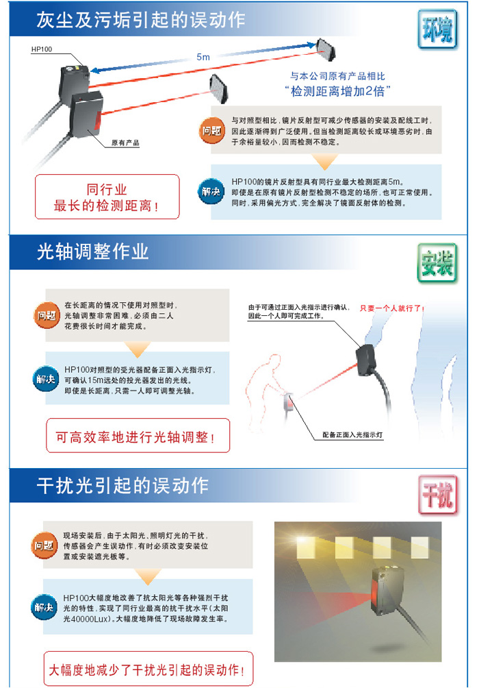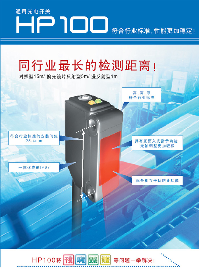通用光电开关HP100符合行业标准,性能更加稳定。
