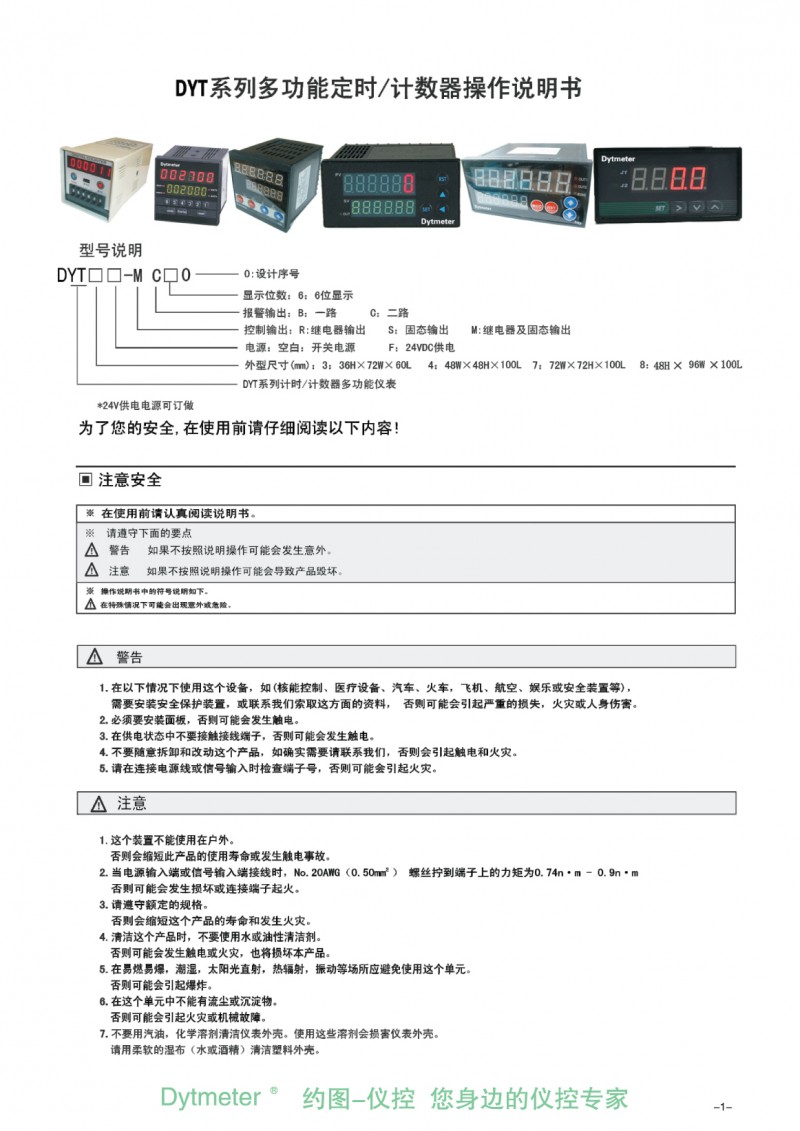 约图-仪控 您身边的仪控专家。约图-Dytmeter仪控有限公司是一家有着十几年专业生产电力智能数字测控仪、电工类数字电压、电流、功率、电量类仪表、各类工业传感器、电动执行器、旋转编码器等电力电子产品的高科技企业,简称“约图-仪控”。公司拥有以博士和硕士为主的高素质开发队伍,有着多年工业类传感器、多种智能测控仪的研发、生产、安装经验。本着务实、创新和高起点的精神持续推出多种符合于市场导向的新产品。公司生产的产品已广泛应用在石油、化工、电力、冶金、钢铁、机械、轻工、食品、包装、通讯、能源、环保等领域。约图-Dytmeter与多家国内外知名企业结成战略伙伴联盟,利用自身的工业系统集成优势,为用户提供全方位解决方案。公司主要生产经营网络电力测控仪、各类工业传感器、电动执行器、旋转编码器、低压电动机保护器及电机软启动,电力微机综合自动化,可编程控制器及变频器等。 约图-Dytmeter仪控有限公司特别推出D-YT46网络电力测控仪,D-YT41各类单相、三相电压、电流表、D-YT23智能数字转速、频率表,D-YT系列压力、液位、流量系列传感器、D-YT21计数、计米器等。...... 本公司秉承以“诚信、守约、快捷、务实”为服务准则;以“品质第一、客户至上”为经营宗旨。