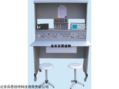 | 二、特点 (一)通用性强:即可通过实训台的编制组成多种产品生产流水线,完成产品的电子工艺实训,也可单台作为电子技能实训使用。 (二)综合性强:可作为电子、电工、机械等专业课程的实训、可作手工焊接实训、 SMT 焊接实训、电子装配实训、整机装配维修实训等。 (三)功能齐全:提供稳压电源、交流低压电流、函数发生器、蜂鸣器、多路插座、调压器等,为电子产品的测量调试和开发新产品提供丰富的资源。安装日光灯照明、看板(用来夹资料)、仪器架、工具架。 (四)创新性:提供多种电子元器件和电子产品装配工具,不但能锻炼学生的装配调试技能,还可以在现有产品的基础上进行二次开发:课程设计、毕业设计、电子竞赛课题,以培养学生的创新能力。 (五)配套实训资料丰富:每块所提供的实训板都有元器件清单、装配图、指导书,完成学生对认识、设计、焊接、调试、整机检修等多种技能工艺的实训。 三、技术性能 (一)输入电源:单相三线 220V ± 10% 50Hz (二)输出电源: 1. 直流稳压电源:二路 0-30V 稳压直流电源输出,内置式继电器自动换档,多圈电位器连续调节,zui大输出电流 2A ,具有预设式限流保护功能,数字显示电流电压; 2. 低压交流电源输出: 3V 、 6V 、 9V 、 12V 、 15V 、 18V 、 24V 交流输出、电流 2A ; 3. 函数发生器:输出正弦波、三角波、方波、频率范围 5Hz-550KHz ;频率有表指示。 4. 单次脉冲输出:每拔一次开关即可输出一组正负脉冲; 5. 音频功率放大器:内置喇叭,音频可调,在调试中可作信号寻迹使用。 (三)工作环境:温度 -10 ℃~ +40 ℃ (四)装置容量:< 500VA (五)外形尺寸: 1200mm × 750mm × 2000mm 四、实训台的构成 实训台由实训桌、控制柜、功能屏、实训线路板(包括元器件)、工具包等组成。 (一)实训桌:钢木结构,桌面为防静电、耐磨材料制成。 (二)控制柜:提供交直流电源、信号源、安全插座等。 (三)电源总控台:多能同时控制 40 台实训台电源,具有漏电、过载保护功能,一个实训室配备 1 台; (四)工具套件: MF-47 万用表 1 只、剥线钳 1 把、尖嘴钳 1 把、斜口钳 1 把、大小 + 字螺丝刀各 1 把、大小 - 字螺丝刀各 1 把、镊子 1 把、剪刀 1 把、烙铁 1 把、吸锡器 1 把、热台拨放台 1 台、放大镜台灯 1 只、焊锡丝、松香若干。 (五)实训线路板(套件):实训线路涵盖数字电路、模拟电路、机、电、声、光、磁控制。