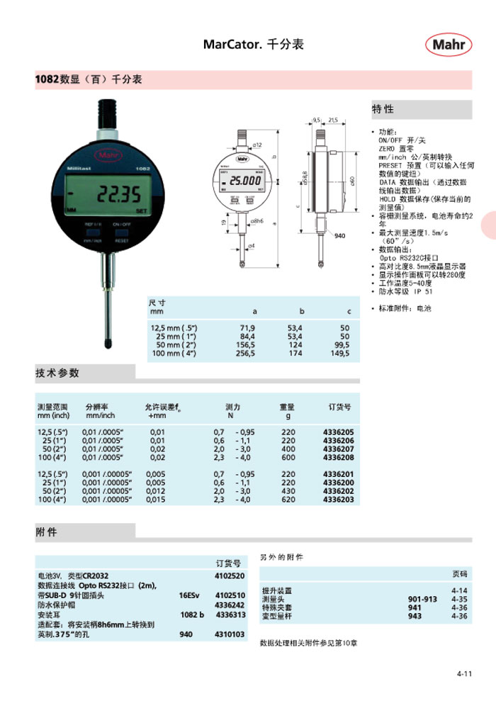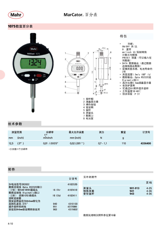 德国马尔数显千分表1075/1080/1081