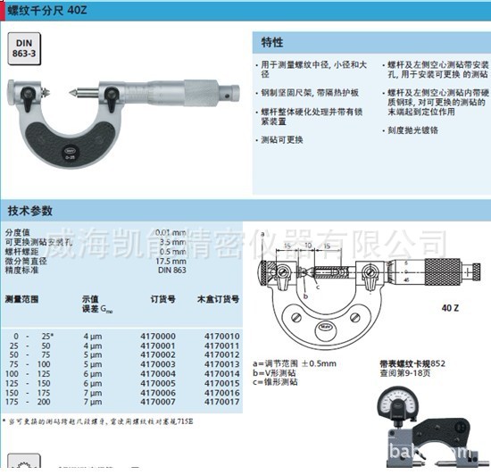 | 型号 | 40Z | 类型 | 螺纹千分尺 |