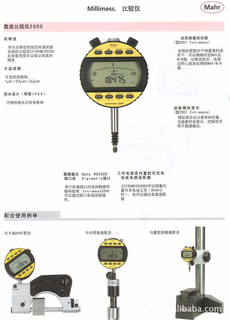 德国马尔数显电感比较仪2000/2001的特性及技术参数: