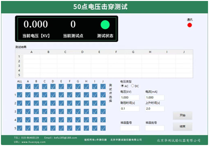 锂电池隔膜50点电极法测试仪,该仪器是根据《GB/T 36363-2018 锂离子电池用聚烯烃隔膜》、GB/T 13542-2006、IEC 60674-2:1988 电气用塑料薄膜标准要求设计的50点电极法设计的高压试验装置。主要用于电气用锂电池隔膜,聚氨脂薄膜、塑料薄膜、聚丙稀薄膜等绝缘材料在给定直流电压下每平方米的击穿电压值。采用计算机控制,通过人机对话方式可对试验过程中的各种数据进行快速、准确的采集、处理,并可存取、显示、打印。