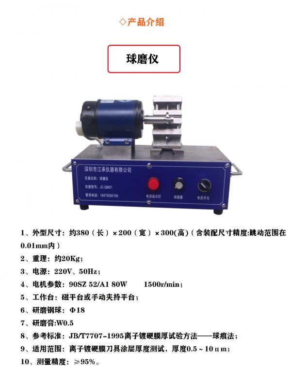 免责声明:以上所展示的[JC-QM01 PVD球磨仪 金属膜厚球磨仪 球痕法测试仪]信息由会员[深圳市江承仪器有限公司]自行提供,内容的真实性、准确性和合法性由发布会员负责。