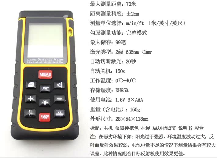 ◆通常测距需要全反射棱镜配合,而房屋量测用的测距仪,直接以光滑的墙面反射测量,主要是因为距离比较近,光反射回来的信号强度够大。与此可以知道,一定要垂直,否则返回信号过于微弱将无法得到距离。