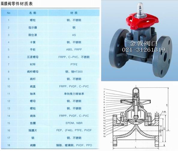 G41F-6S隔膜阀阀体重量轻、耐腐蚀性强; 3.根据指示器位置可判断开启程。 常用材质相关介绍: |
