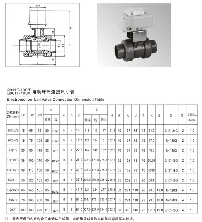 UPVC电动球阀 构造原理: 电动塑料球阀构造简略,只由少数几个零件组成,资料耗用省;体积小、重量轻、安装尺寸小,驱动力矩小,压力调节阀,操作简便、敏捷,只需旋转90°即可快速启闭;并且还同时具有良好的流量调节功效和封闭密封特性,在大中口径、中低压力的应用范畴,电动球阀是主导的阀门情势。电动球阀处于完整开启地位时,蝶板厚度是介质流经阀体时的阻力,因此通过该阀门所发生的压力降很小,故具有较好的流量把持特征。电动球阀有弹密封和金属的密封两种密封型式。弹性密封阀门,密封圈可以镶嵌在阀体上或附在蝶板周边。采取金属密封的阀门一般比弹性密封的阀门寿命长,但很难做到完整密封。金属密封能适应较高的 工作温度,弹性密封则具有受温度限制的缺点。假如请求电动球阀作为流量把持使用,重要的是准确选择阀门的尺寸和类型。电动球阀的构造原理尤其合适制造大口径阀门。电动球阀不仅在石油、煤气、化工、水处置等一般产业上得到普遍运用,而且还利用于热电站的冷却水体系。常用的电动球阀有对夹式电动球阀和法兰式电动球阀两种。对夹式电动球阀是用双头螺栓将阀门连接在两管道法兰之间,法兰式电动球阀是阀门上带有法兰,用螺栓将阀门上两端法兰衔接在管道法兰上。阀门的强度性能是指阀门蒙受介质压力的才能。阀门是蒙受内压的机械产品,因而必需具有足够的强度和刚度,以保证长期使用而不产生决裂或发生变形。