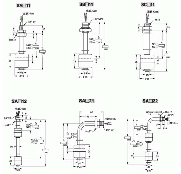 6、比重:浮球比重SG必须小于被测液体,否则浮球浮不起来。