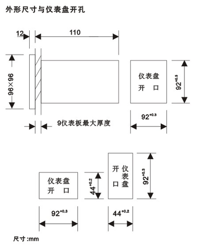 外形尺寸与仪表盘开孔:
