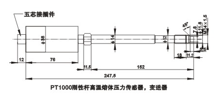 二、PTl000钢性杆高温熔体压力传感器及变送器: