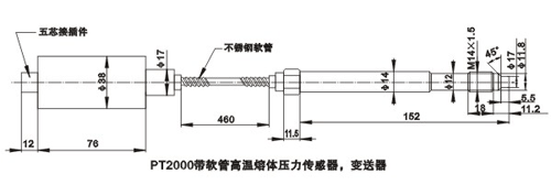 三、PT2000带软管高温熔体压力传感器及变送器: