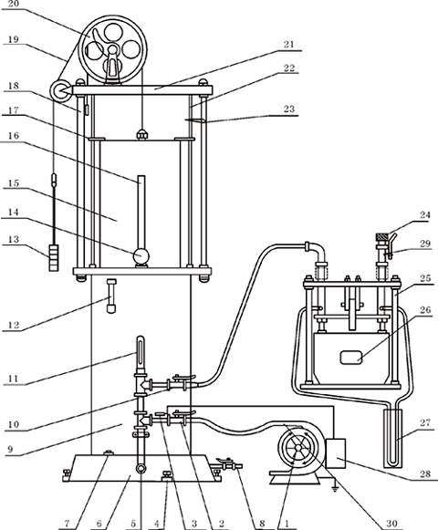 25.夹紧装置 26.被校仪表 27."U"形差压表