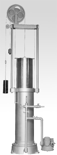 钟罩内的气体压力是利用钟罩重量超过配重砣重量来产生的,该恒压形成钟罩的余压也即所谓的“工作压力”,并用凸轮补偿机构使该恒压不随钟罩浸入封液深度不同而变化,保证了钟罩内工作压力的恒定。当需改变工作压力时,可增减配重砝码。 |