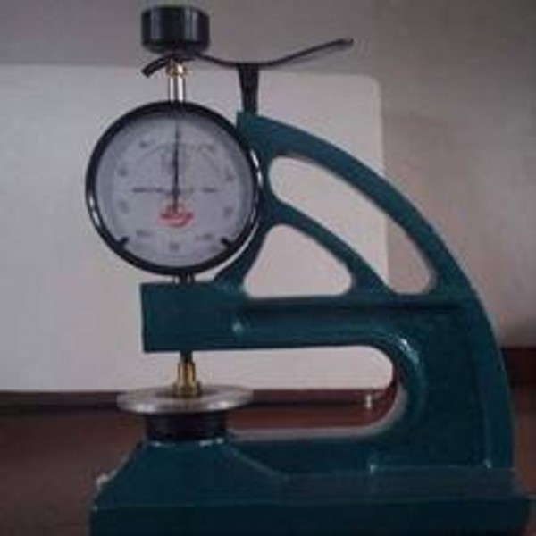 2、用手指按下操纵杆,使测足上台,将被测片材质放在平台与测足之间,轻放操纵杆此时表的读数,即被测物的厚度。每个待测尺寸至少要取5个测量值,计算5点的平均值作为该卷材的厚度并报告zui小单位值。