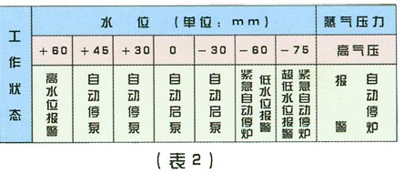 1、控制参数(350mm):(见表2) 2、水位显示:汽红水绿。 3、警响:(见表1) 4、仪器工作环境: 环境温度:一30℃--+50℃相对湿度:88%(40℃时)
