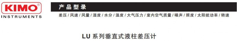 LU系列u型压差计为法国KIMO公司原装进口,可用于测量空气或其它气体的微正压,负压或差压;量程范围依照差压计所选择使用的油液而定,油液可选择使用:AWS10(红油)和VOLT1S(蓝油).