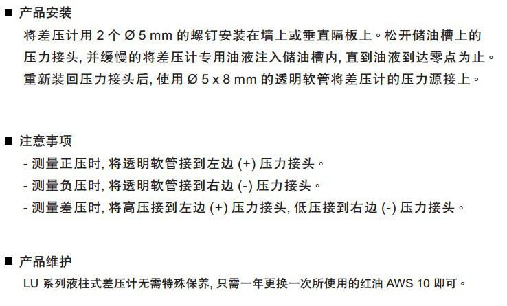 ★随货提供白色背板,固定螺丝,压力端口和差压计专用油液.