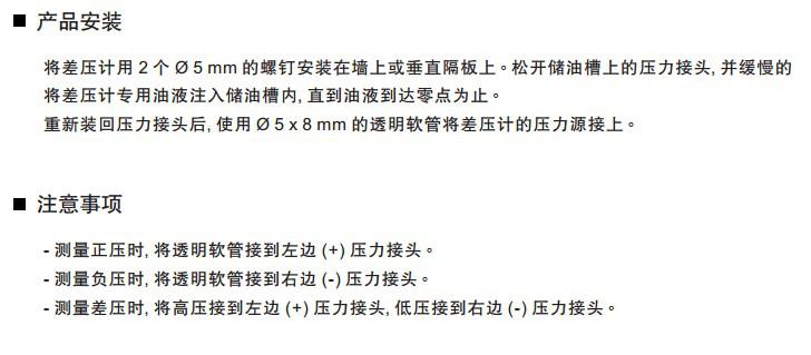 ★随货提供白色背板,固定螺丝,压力端口和差压计专用油液.