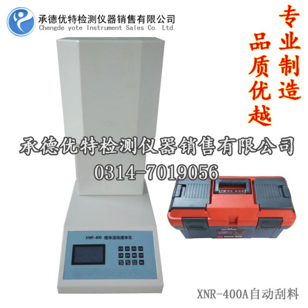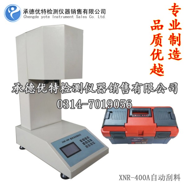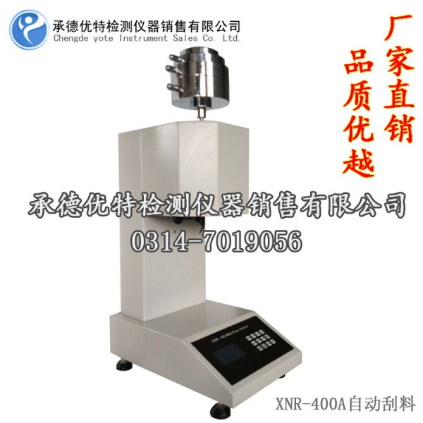 型号XNR-400A型为标准配置,采用质量法测试方式,自动刮料(仪器调整时也可手动刮料),样条称重录入仪器系统中可自动计算结果,并将历次试验记录保存,方便日后查阅,同时配有全套砝码和所有相关配件(电子秤为选配)。XNR-400B型在XNR-400A型的基础上增加了微型打印设备,可将任意已存试验记录以超市小票的形式打印出来,打印内容非常详细。XNR-400C型在XNR-400B型的基础上增加了熔体密度测试,体积法测试方式,功能更强大,更。