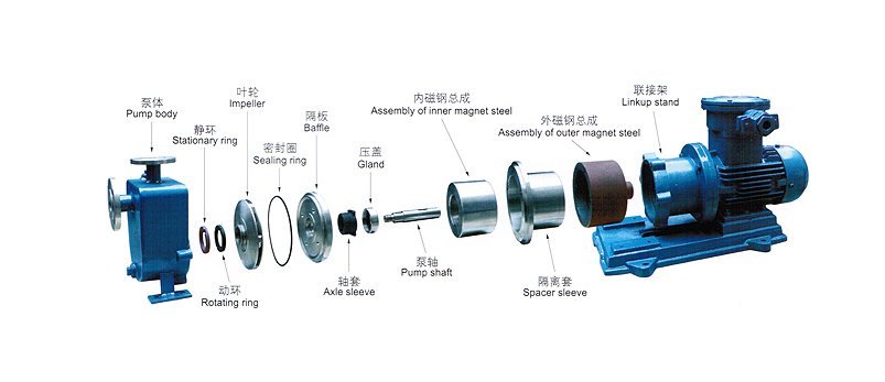 ZCQ型自吸式磁力泵以静密封取代动密封,利用磁力耦合间接驱动,完全消除了滴漏的烦恼,不污染使用场地。是化工流程中杜跑、冒、滴、漏现象,消除环境污染,创造“无泄漏车间”、“无泄漏工厂”,实现安全、文明生产的理想用泵。