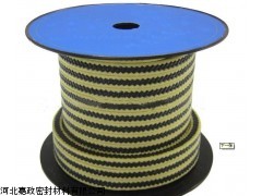 芳纶黑四氟芳纶盘根由高质量芳纶纤维浸渍PTFE四氟乳液和润滑添加剂编织而成。有较好的耐化学性,高回弹,低冷流。具有的高转速、高强度的性质(被称为人造金属线)。所以,与其它类型的盘根比较,它能抵抗颗粒结晶介质和更高的温度既可单独使用也可与其它盘根组合。在泵系统上是很好的石棉替代产品。
