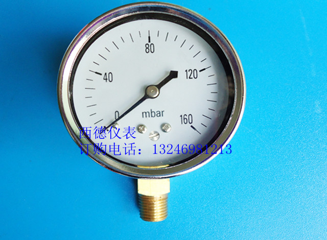 用途:此款压力表为进口产品,熔的技术,精选优质材料精制而成。该压力表采用膜盒作为测量微小压力的敏感元件,用于测量管道终端用气压力显示,主要应用于量测mbar级压力,测量对铜不腐蚀的微压和负压,广泛适用于瓦斯燃烧设备、涂装设备,热能设备和燃气加热系统、煤气管道工程如锅炉通风,鼓风,引风,烟气及制粉等系统的微压和微负压,以及气体管道燃烧设备,现场指示微弱气液体压力.如调压箱,调压闰,燃烧机,燃烧器,风机,呼吸器,锅炉,烤炉,烘箱,厨具等工业设备用气测量显示仪表。