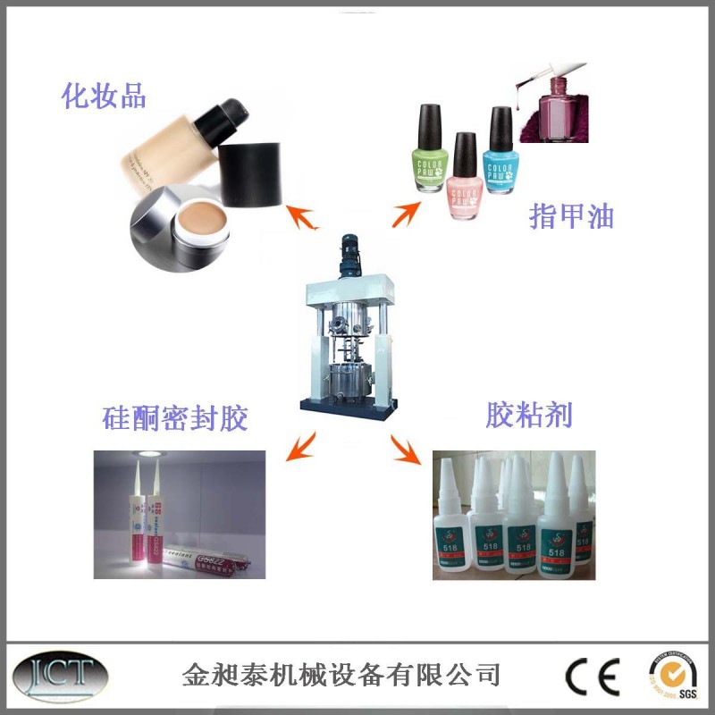 立式搅拌机适用于化工、轻工、食品、电池、制药、建材、农药等行业所需的多组份固-固相、固-液相、液-液相物料的混合、反应、分散、溶解、调制等工艺;如油墨、颜料、粘胶剂、密封胶、封装胶软膏、糊状物料、润滑脂、油漆、软膏、化妆品、添加物等多种高粘度物的制备。