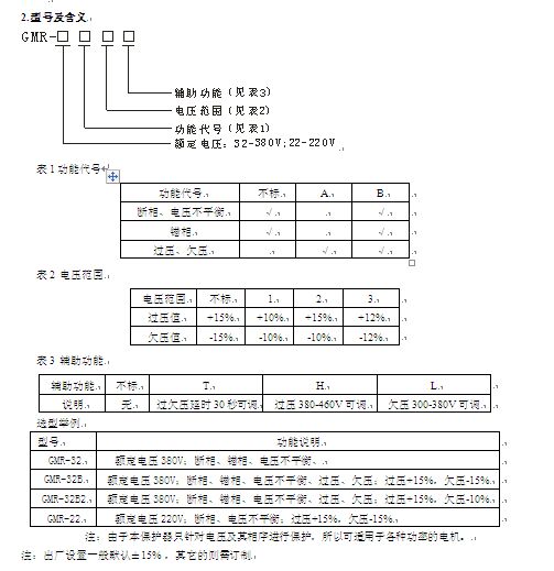 注:由于本保护器只针对电压及其相序进行保护,所以可适用于各种功率的电机。