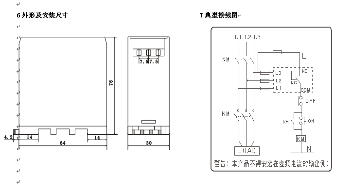 警告!本产品一般是对三相电源的电源侧采样,不得安装在变频电流的输出侧!