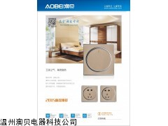温州澳贝科技有限公司是一家专注于生产销售电工电器照明的企业。产品主要包括墙壁开关、墙壁插座 灯头灯座 防溅盒防水盒 地板插座等电工配套系列产品。公司自投入市场以来,已成为众多酒店宾馆、家庭装修安装的第一选择。
