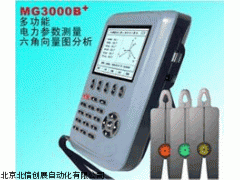2.实时测量电力三相系统:电压、电流、相位角及各相之间关系,并显示向量图;