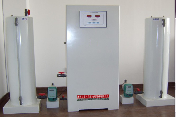 采用二氧化氯对源水进行预氧化处理。同等剂量下二氧化氯的除藻率比氯要高十倍以上,同时可去除水体中的腥臭味。二氧化氯的予氧化处理还有一定的助凝作用,使絮凝效果得到提高,并能有效控制沉淀池、滤池的藻类滋生。