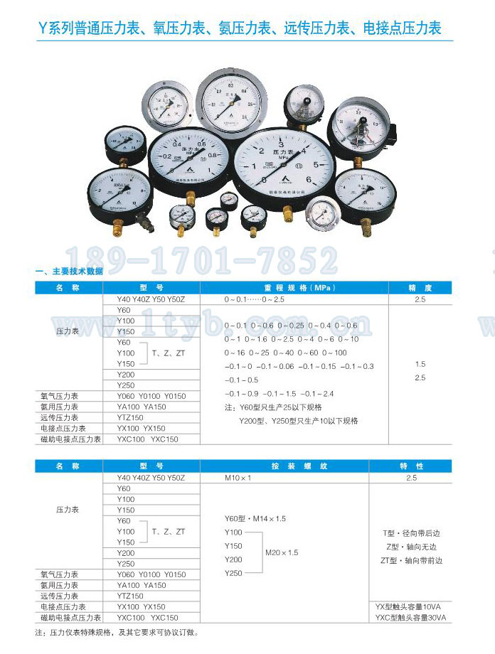 Y150ZT 联泰仪表普通轴向带边压力表Y150ZT]信息由会员[