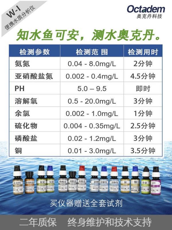 所有型号的奥克丹水质分析仪,两年保修,终身维护。