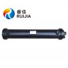 水冷式油冷却器的热介质是由筒体上的接管进口,顺序经各折流通道,曲折地流至接管出口。而冷却器介质则采用双管程流动,即冷却器介质由进水口经分水盖进入一半冷却器管之后,再从回水盖流入另一半冷却器管进入另一侧分水盖及出水管。冷介质在双管程流过程中,吸收热介质放出的余热由出水口排出,使工作介质保持额定的工作温度。