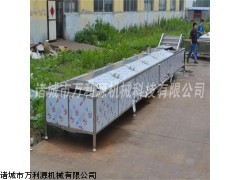 玉米漂烫设备,大虾漂烫机,鱿鱼漂烫机除轴承之外均采用304不锈钢制作、完全符合卫生标准、本设备主要工作原理是通过蒸汽加热、先将灭菌槽内的清水加热至杀菌温度,且将水位控制在适当位置。温度由传感器进行自控。产品经输送网和传动机械传动。按杀菌时间要求缓慢通过槽体进行杀菌,然后送至冷却槽内进行冷却。本机即可使用,也可与其他设备连城生产线,是目前比较理想的杀菌设备。