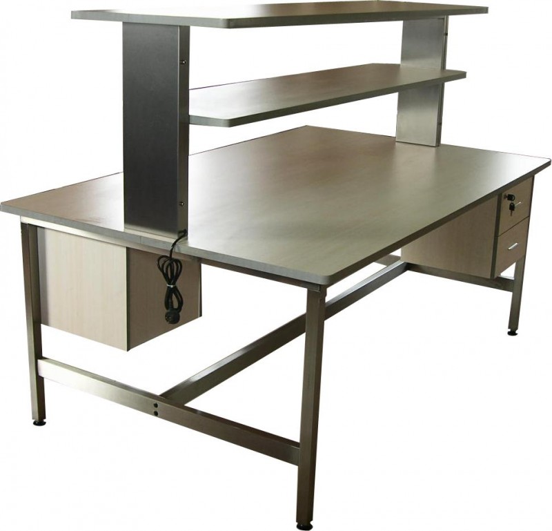 2.规格:单层台面,对称双抽(共四只全封闭抽屉),台面上为双层隔板,带灯及电源插座