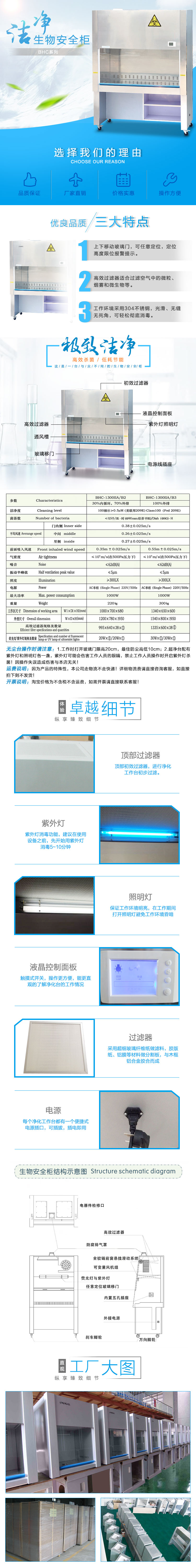 企业精神:质量为先,信誉为重,管理为本,服务为诚。 生物洁净安全柜是当今微生物实验室之必要品,特别是那些对操作者需要采取保护措施的场合。如医疗、制药、科研等进行细菌培养时提供既无菌无尘又工作安全的环境。