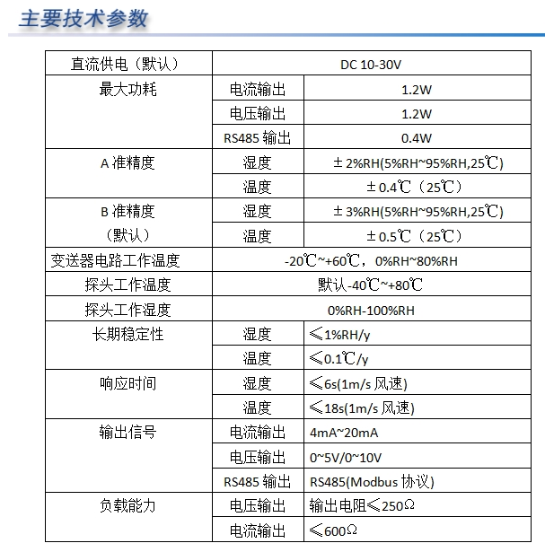 本温湿度变送器为风管温湿度变送器专用外壳,采用美国进口工业级微处理器芯片、进口温湿度传感器,确保温湿度变送器优异的可靠性、和互换性。