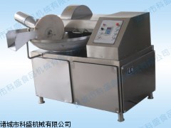 科盛斩拌机对原料进行斩切,搅拌和乳化,防止原料肉中肌红蛋白,脂肪及其他营养成分被氧化,破坏,从而zui大限度的保留了原有的色香、味及各种营养成分。通过斩切提高了产品的细密及和水的亲和力,使产品的弹性得到提高,该机具有刀轴转速高,功率大,斩切交乳化效果好,处理原料范围广等特点,斩拌时将1%的胶原纤维按1:5的比例与冰水浸湿,直接和肉一起加入,同时加入部分冰水,慢速斩拌使其与肉粘合;其他工艺不变。