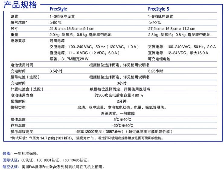 FreeStyle便携式医用级氧机具备3档脉冲设置,体积小重量轻, 仅为2.0kg。FreeStyle 5 制氧机具备5档脉冲设置,是目前市场上制氧量zui高的便携式制氧机之一,每分钟能产生高达1000 mL的氧气。