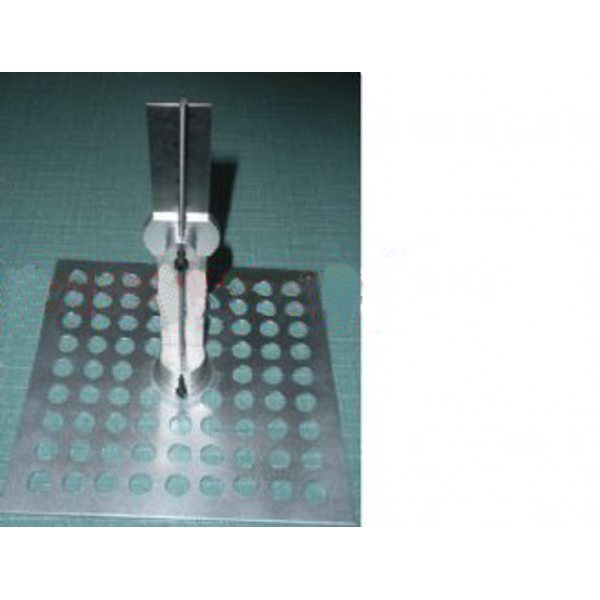 将被测试样平整放在硬质平板上,松开测针底部的拧紧螺母,将仪器轻放在被测试样上,慢慢将测针插入被测试样中,直至底部,看刻度尺指针滑块平行处所指厚度,即为被测试样厚度。