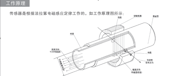 DN150电磁流量计传感器是根据法拉第电磁感应原理工作的,如图一所示。在测量管轴线和磁场磁力线相互垂直的管壁上安装了一对检测电,当导电液体沿测量管在交变磁场中磁力线成垂直方向运动时,导电液体切割磁力线产生感应电势,此感应电势由测量管上两个检测电机检出,数值大小如下所示: