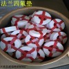 四氟垫片:全称聚四氟乙烯垫片国外又叫PTFE垫片或Teflon(铁氟龙)垫片由聚四氟乙烯棒、管、板经机械车削或裁切而成的平垫片、V形垫片、活塞环、球阀垫圈等具有耐腐蚀、抗老化和不导电等良好特性。 聚四氟乙烯pH值0-14(熔融的碱金属和高温、高压下的氟除外)。其在-100℃~100℃之间能 够具有良好的机械强度。