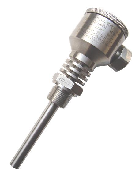 该温度变送器,是由温度传感器、补偿电路和转换电路三部分组成,具有性能稳定,灵敏度高,可靠性强等优点。广泛应用于冶金、机械、石油、电力、化工、压缩机、轻工、纺织、建材等自动化温度测控系统中。