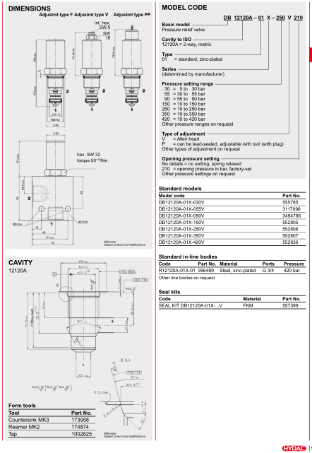 贺德克溢流阀DB12120A-01X-250V的样本: