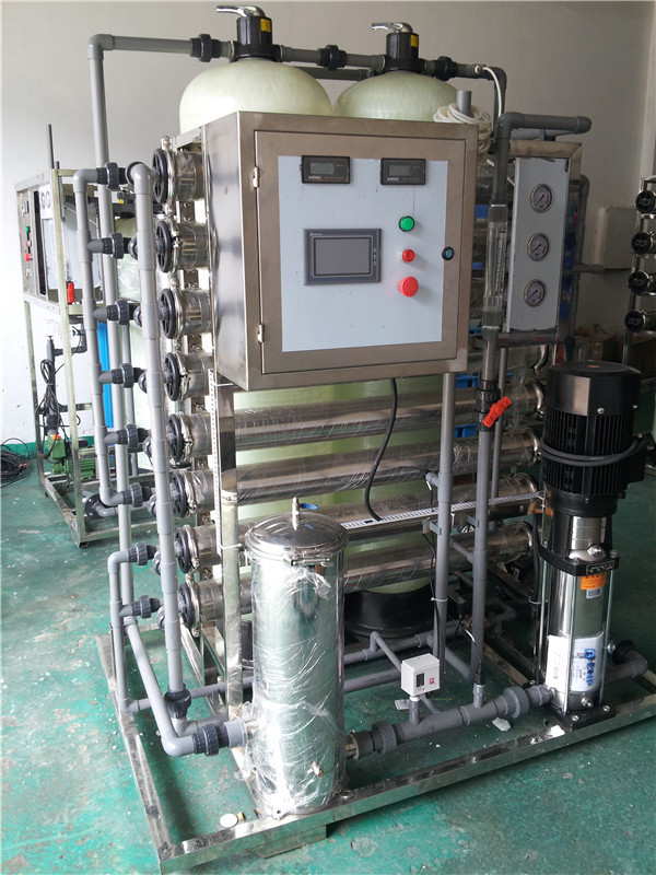 原水箱→原水增压泵→多介质过滤器→活性炭过滤器→离子软化器→保安过滤器→一级高压泵→一级RO反渗透系统→纯水箱