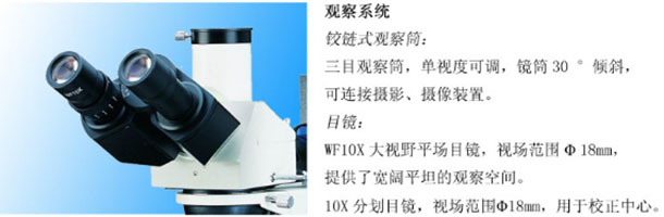 三目镜,倾斜30˚,(内置检偏振片,可进行切换) |